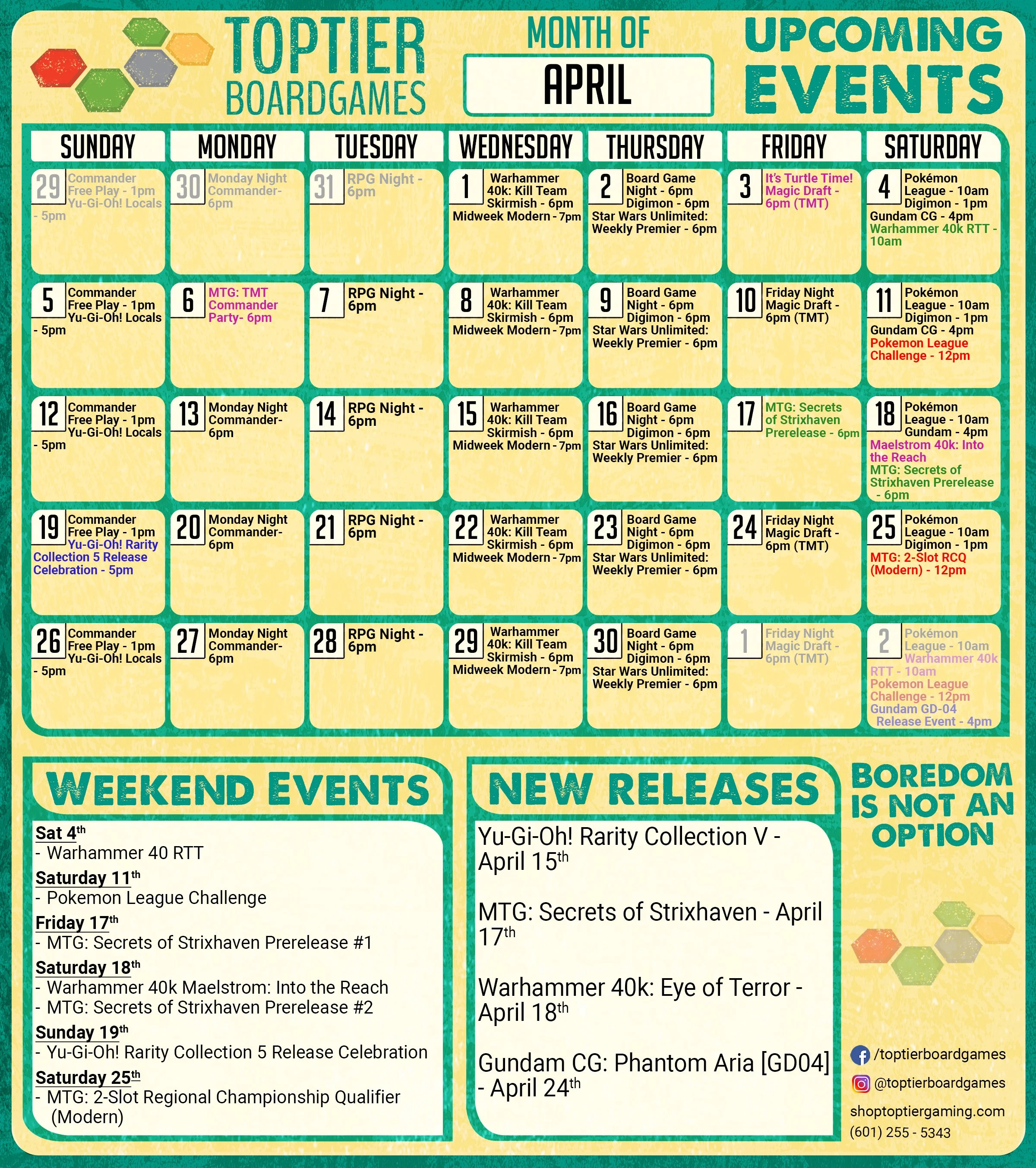 Bring your friends and family, pick a game, and let the fun begin! With our large in-store game library and table space, we make it easy to try new games for FREE!