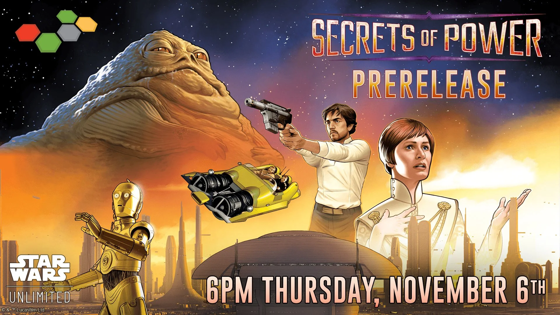The Secrets of Power set features characters and content from across multiple eras of the Star Wars galaxy, with a particular focus on operatives, officials, saboteurs and schemers. Jump into the action with our Prerelease for the next Star Wars: Unlimited set!